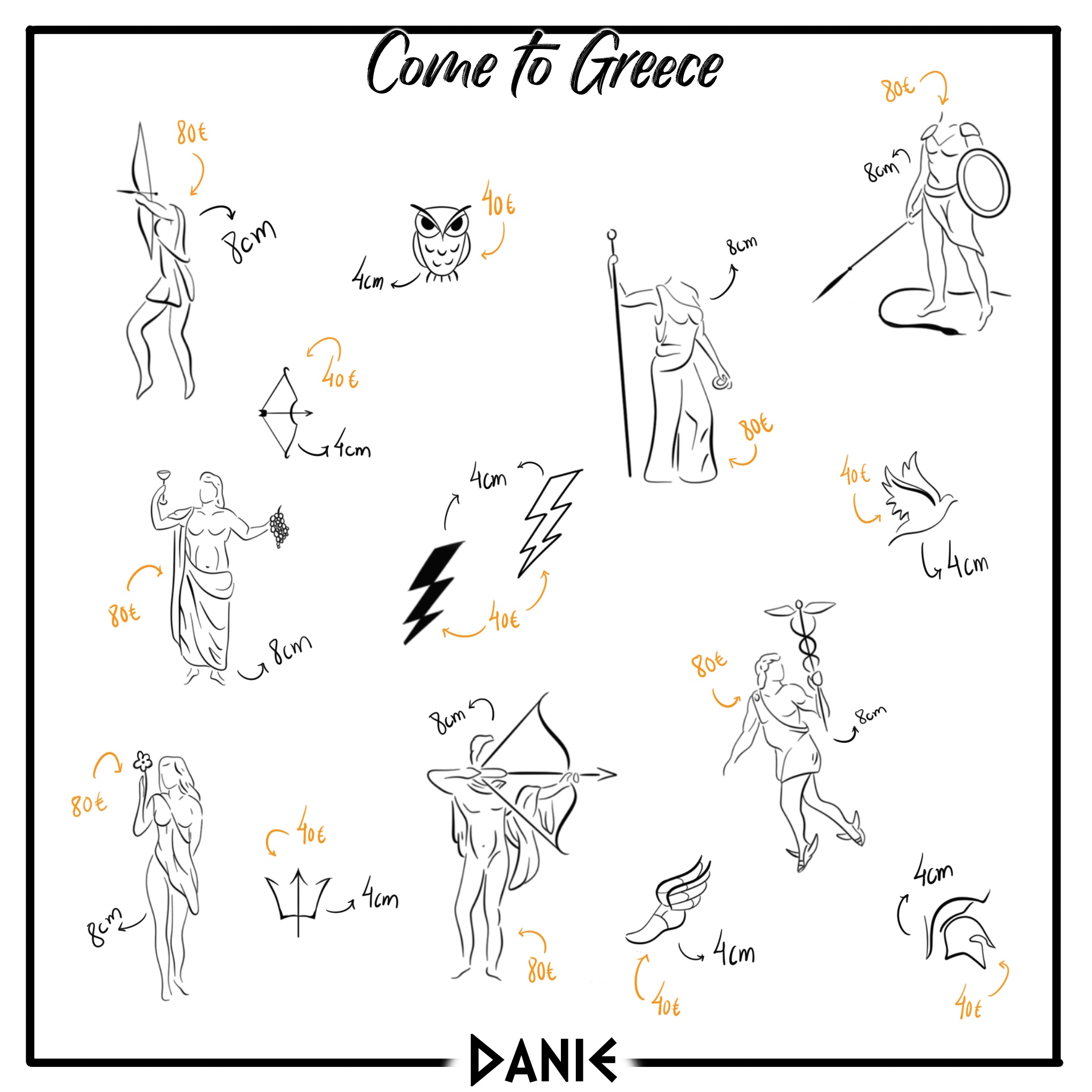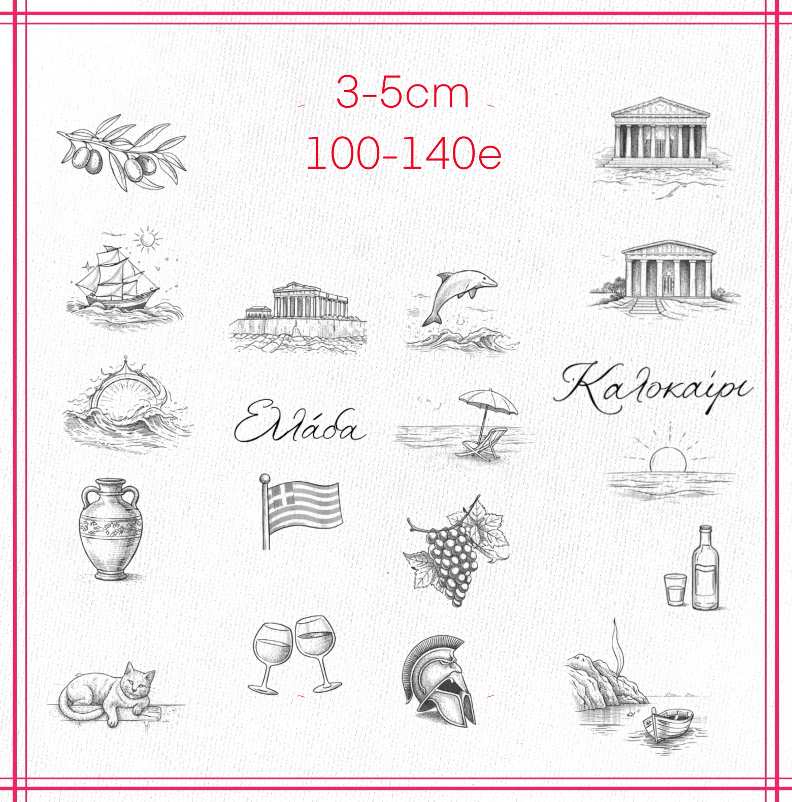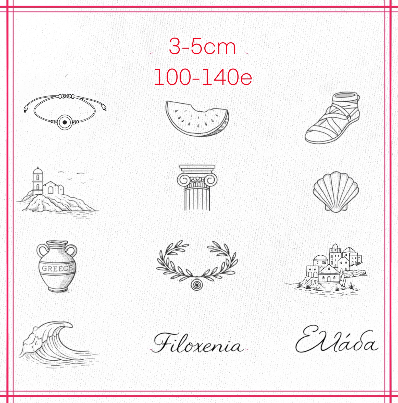 To mark your unique experience in Greece, our artists have designed a special collection of flash tattoos — inspired by ancient culture, local symbols, and modern interpretations of Greek heritage. Whether you’re looking for a bold statement or a subtle tribute, you’ll find inspiration ready and waiting.